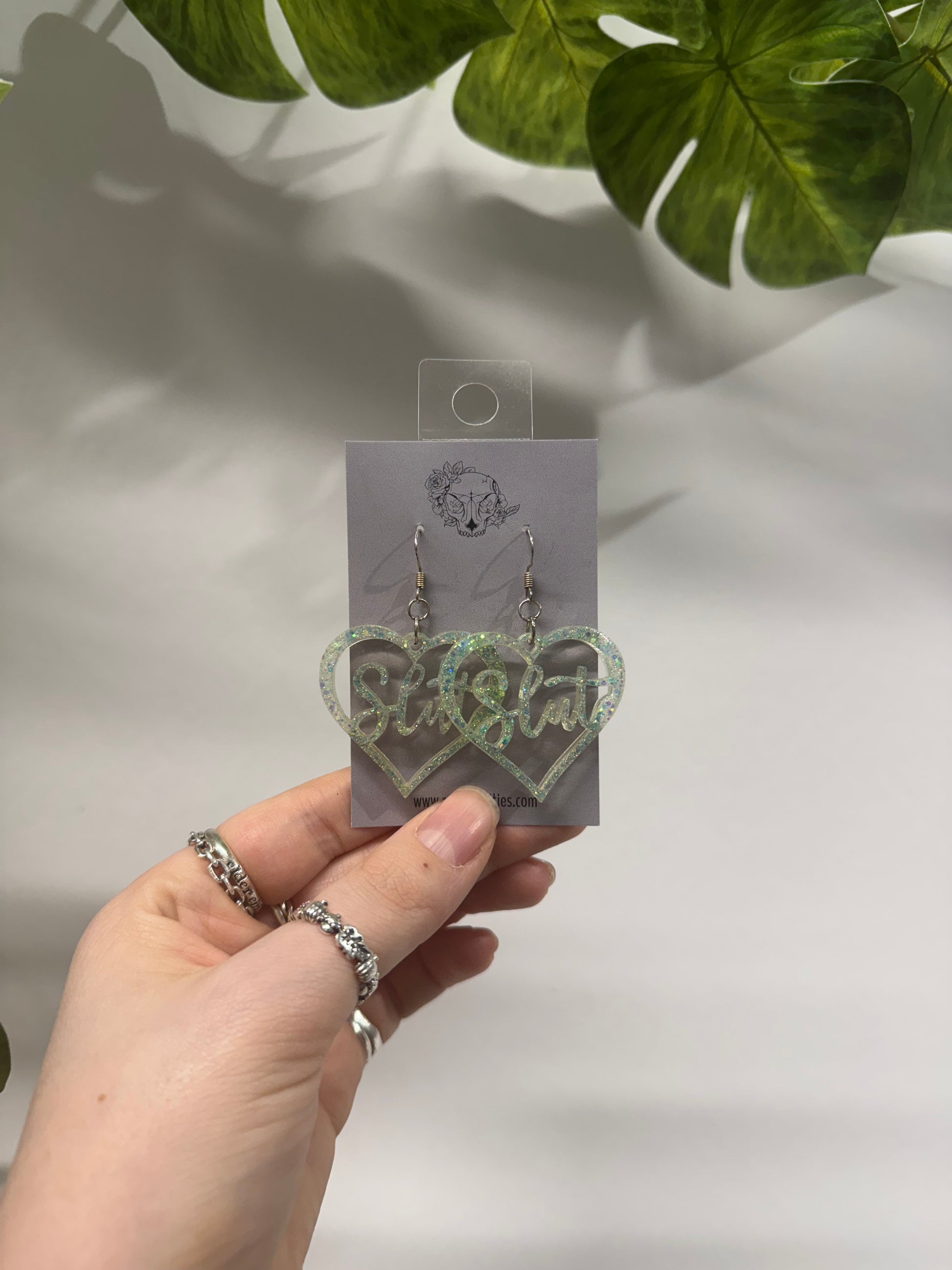 Light Blue Slut Hearts Resin Earrings